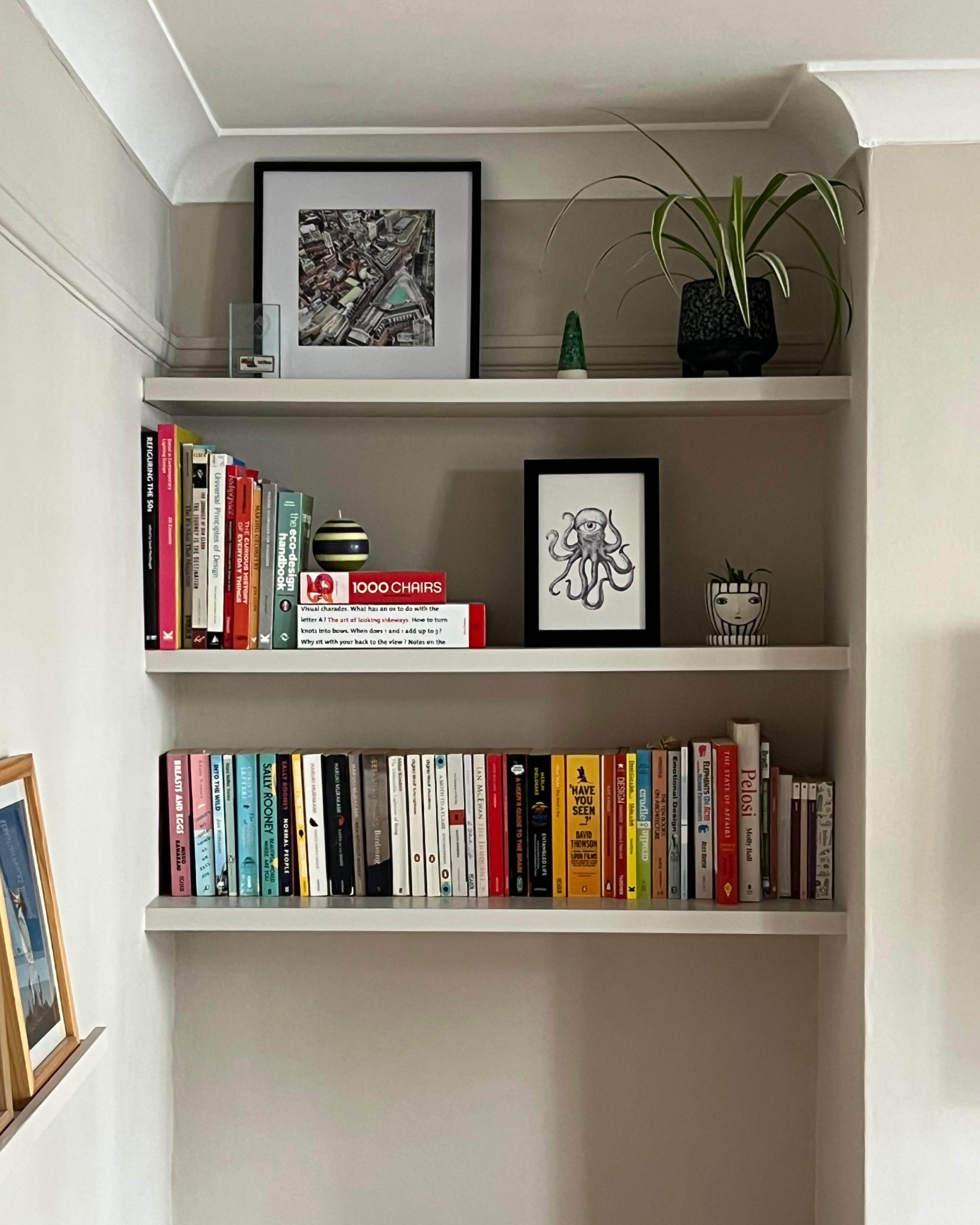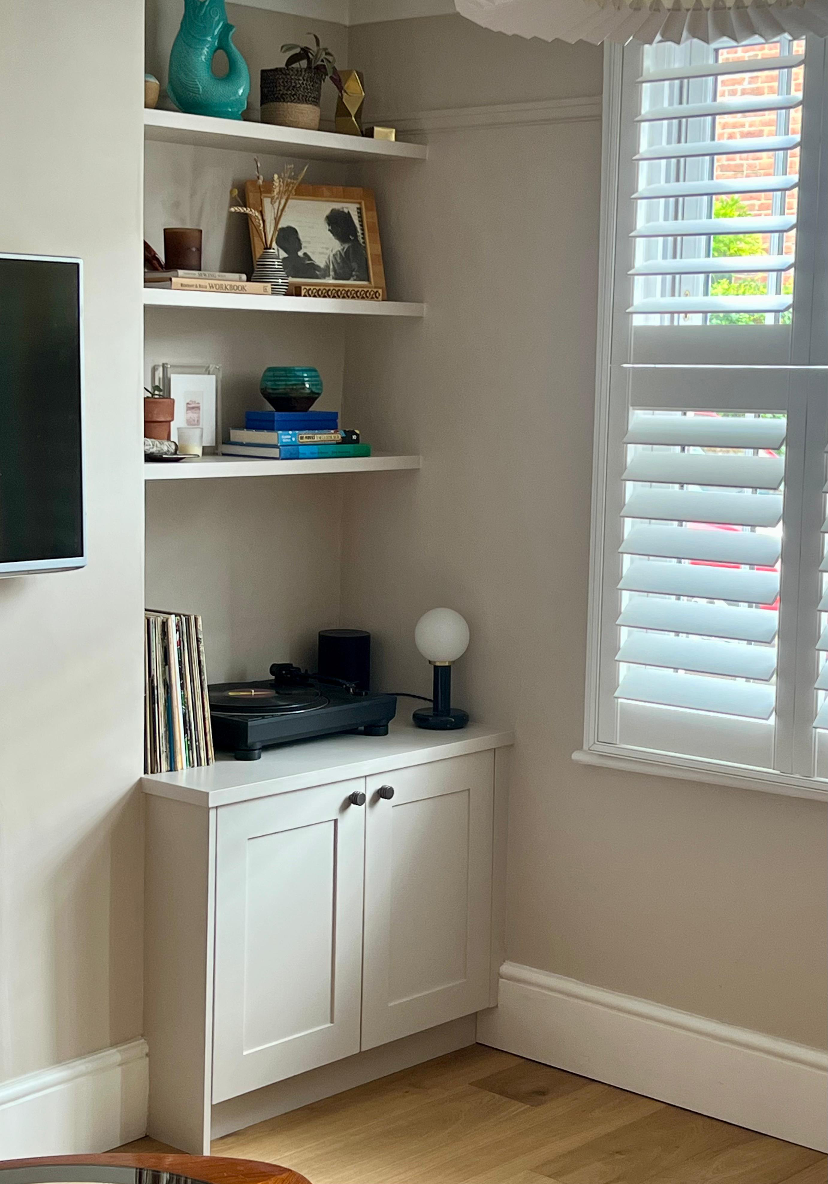 Will approached NIX looking to add extra storage and make the most of the flanking alcoves in his living room. With the electric meter taking up much of the space, a bespoke unit was needed to achieve the perfect fit. The wide floating shelving and integrated cabinetry allow the storage to feel like an effortless part of the room — a tidy, functional, and seamless custom solution.