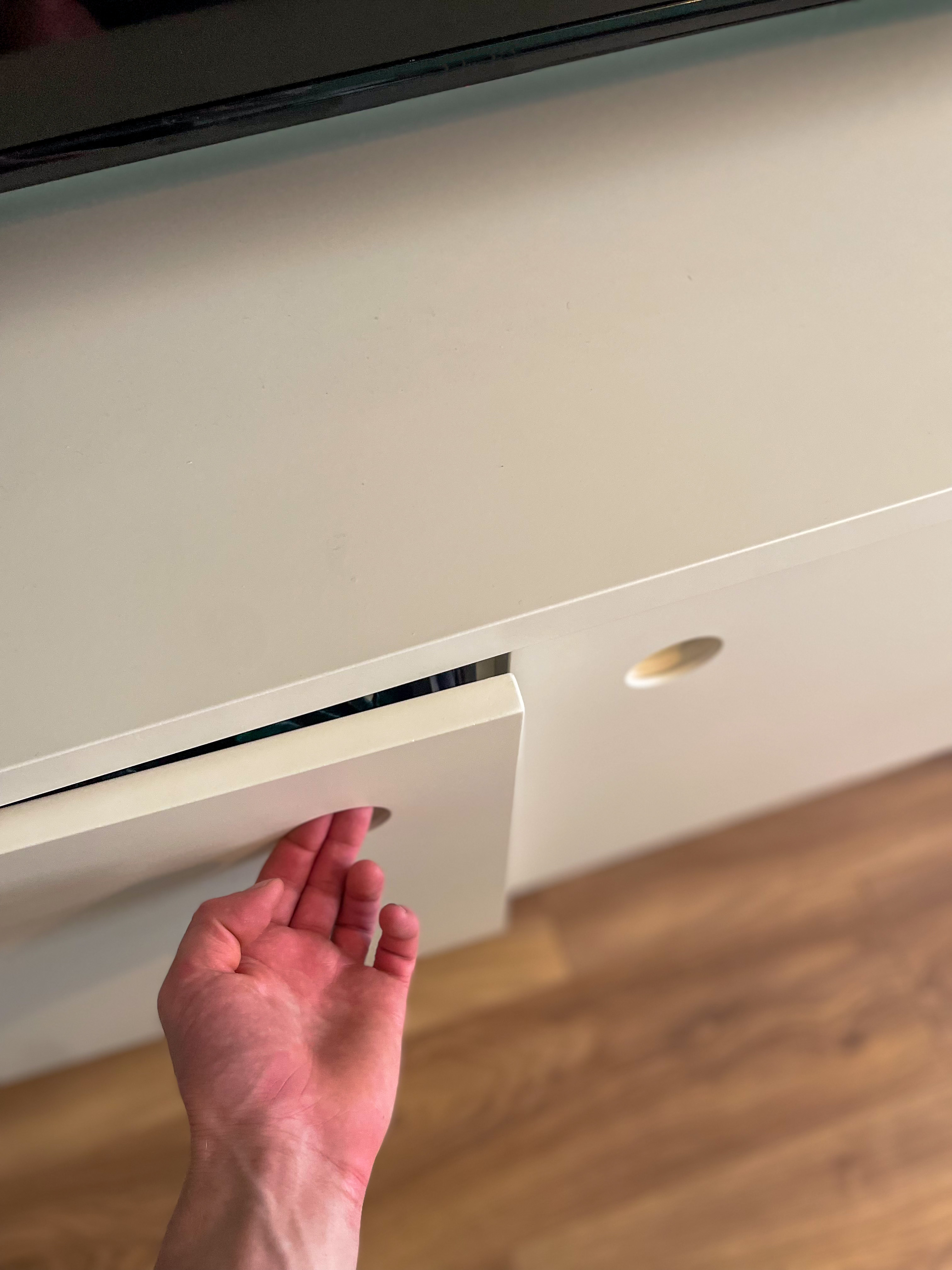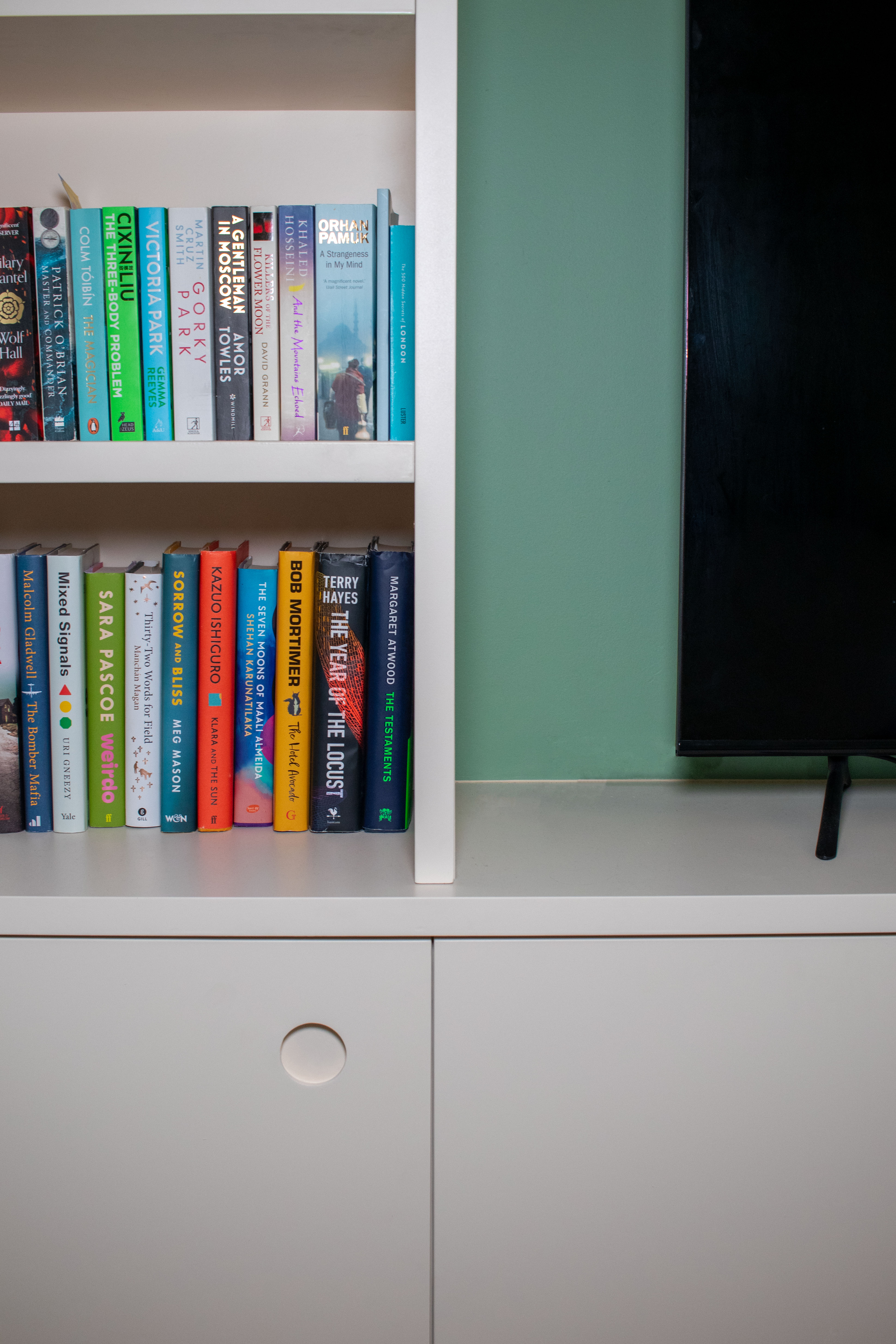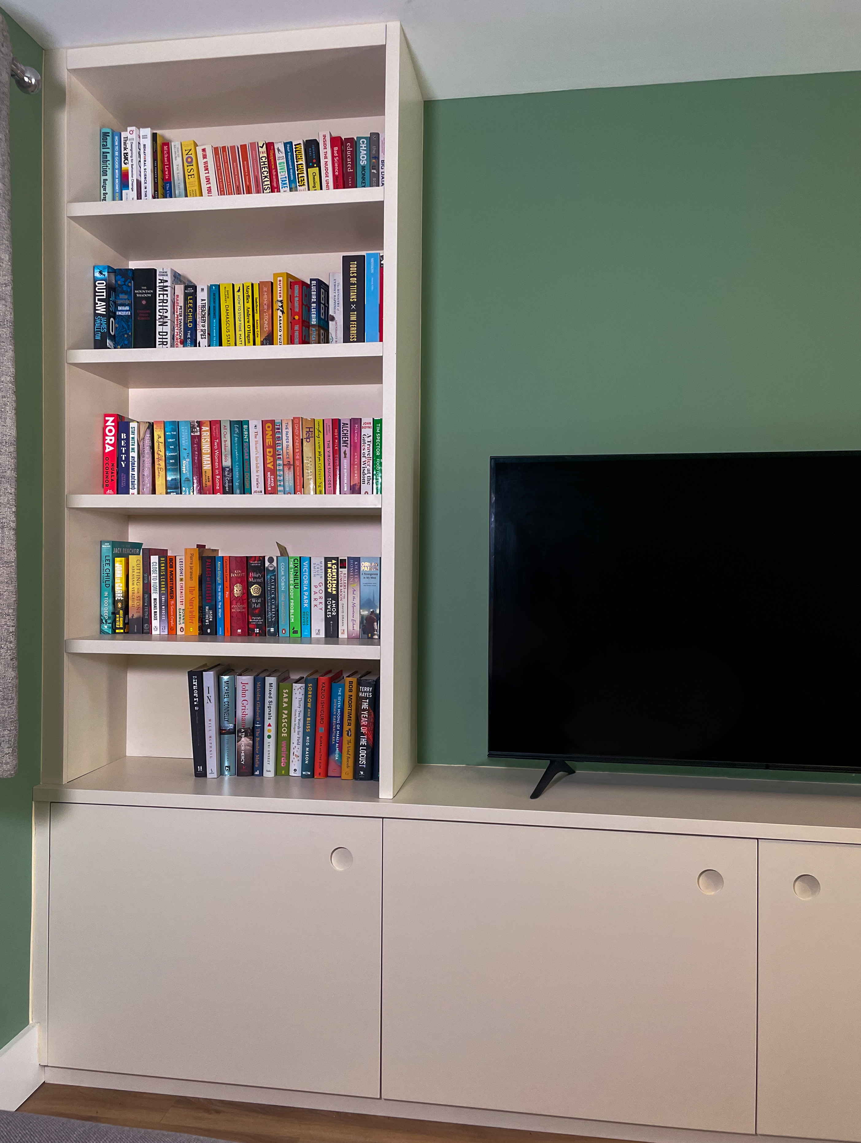 The client approached us looking to create a new striking centrepiece which optimised storage in their family living room. After a personal consultation and detailed review of the requirements for the space - a drink cabinet was a must. The result was a light, minimalist design with flush-sitting handles to ensure their young child wouldn’t bump their head. Finished in a soft chalky white, the cabinetry brightened the room while providing the perfect place to showcase the family’s extensive book collection.